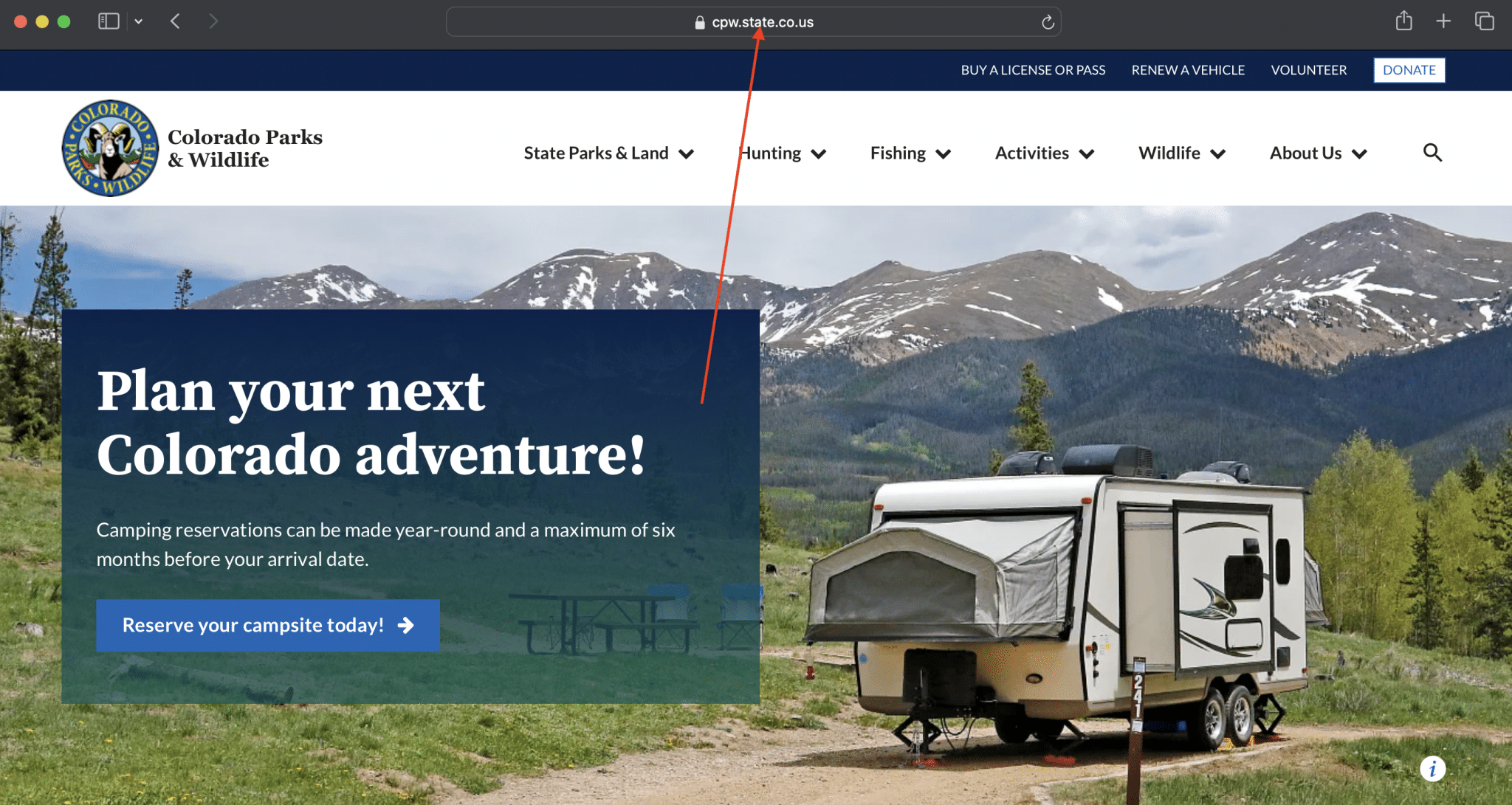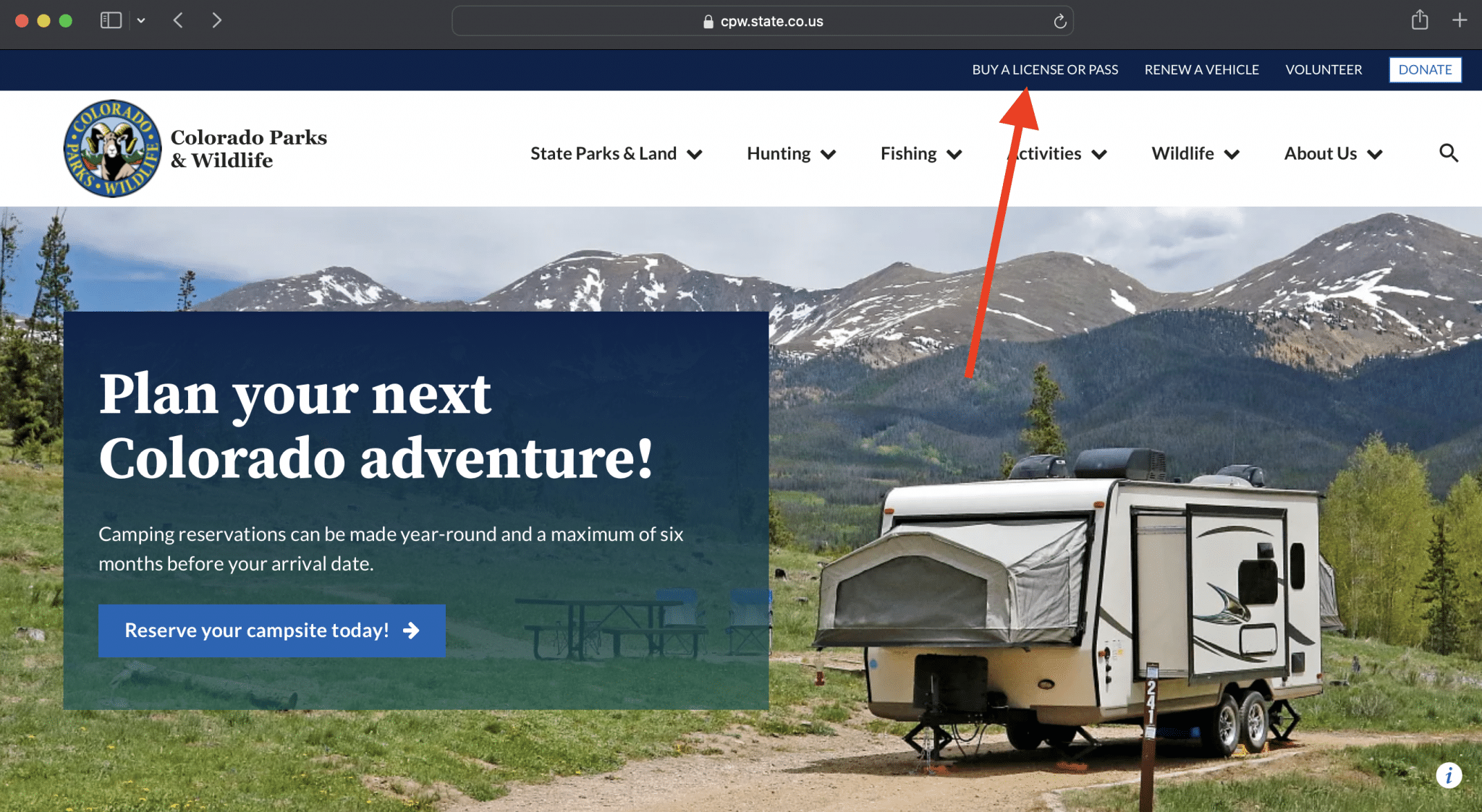 1.) Go to your browser and navigate to the CPW website (https://cpw.state.co.us/)
